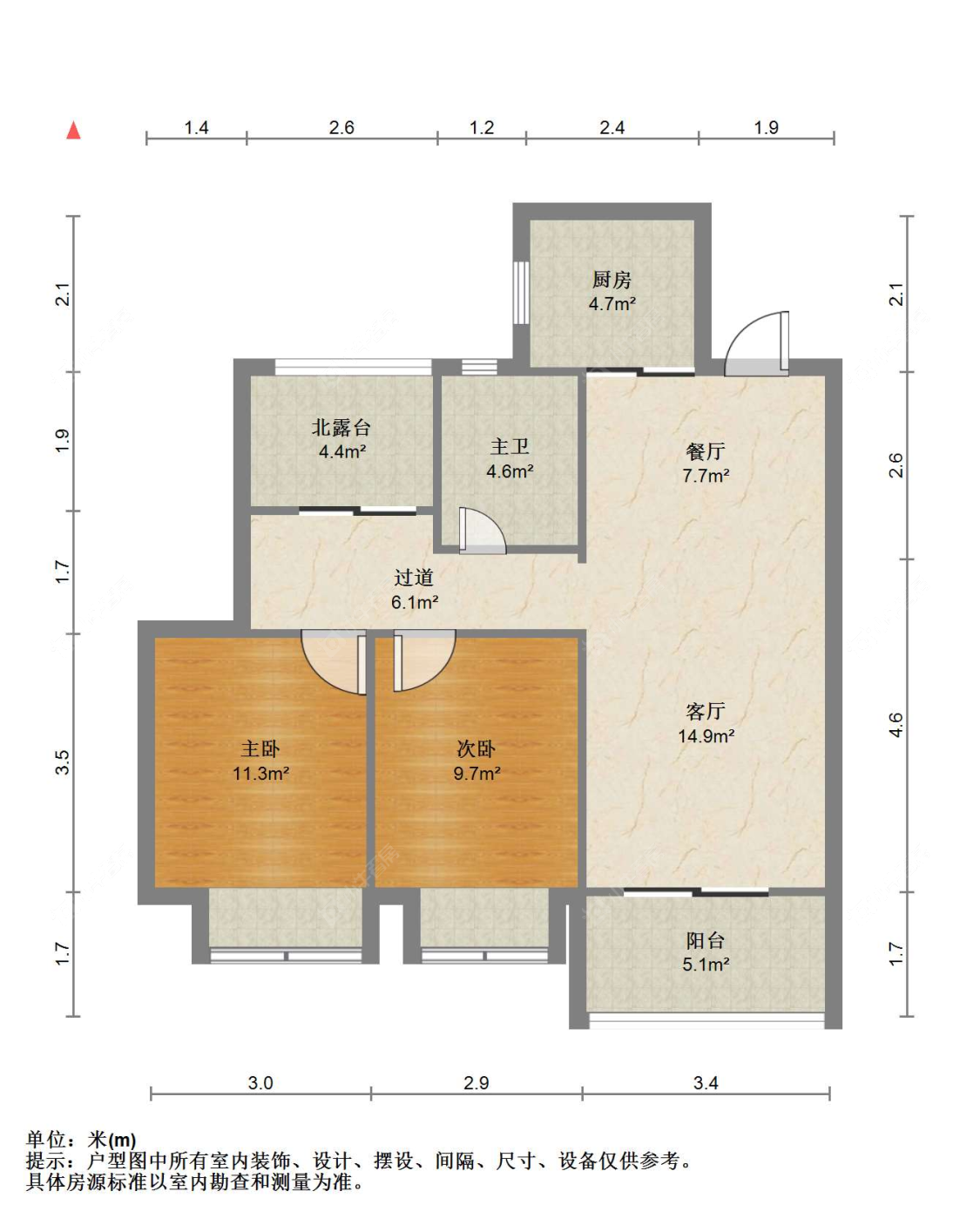 3室2厅2卫 | 108㎡ | 南