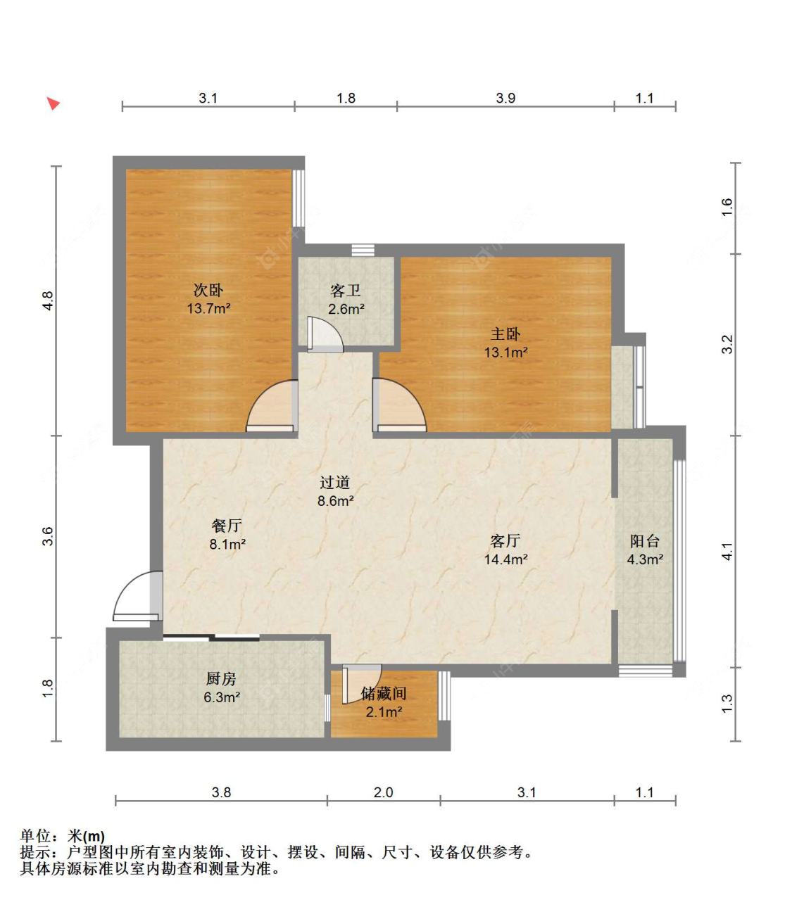 2室2厅1卫 | 86.95㎡ | 南