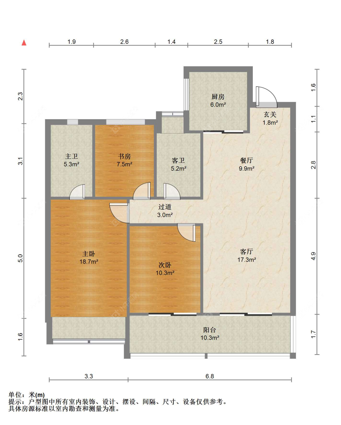 3室2厅2卫 | 122.63㎡ | 南