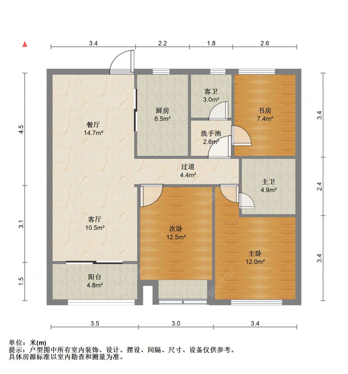 3室2厅2卫 | 118㎡ | 南