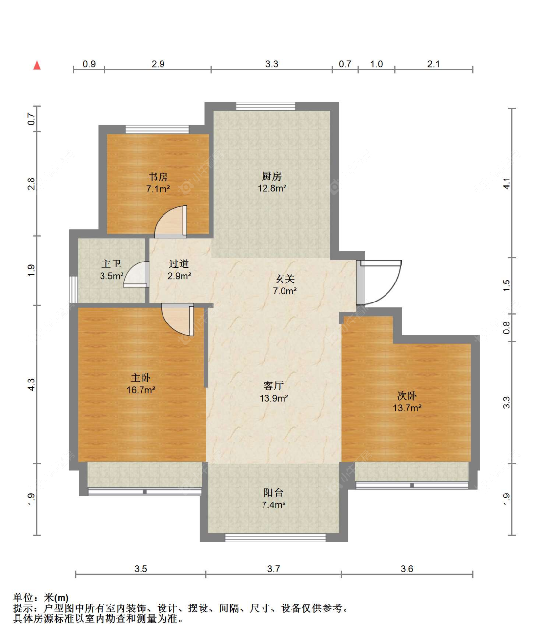 3室2厅2卫 | 127㎡ | 南