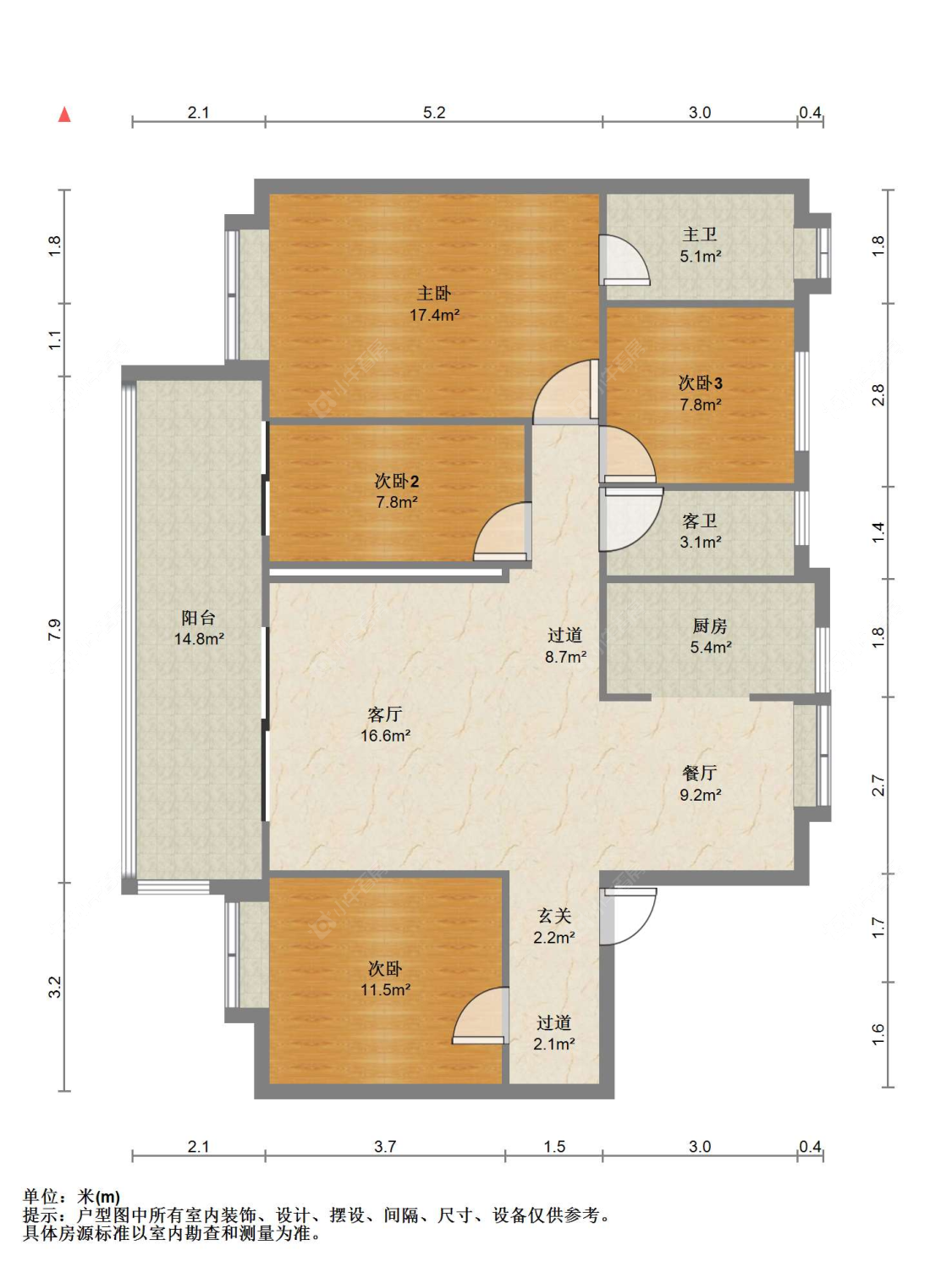 3室2厅2卫 | 116㎡ | 南