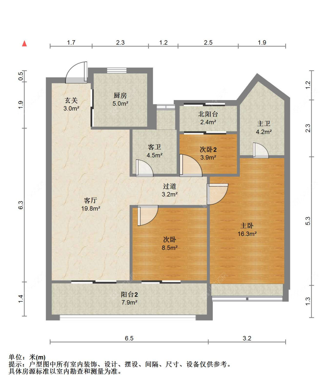 3室2厅2卫 | 100㎡ | 南