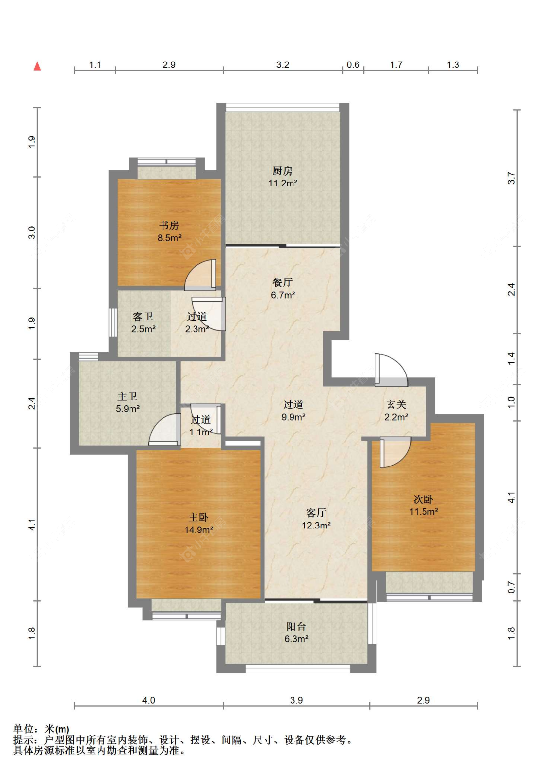 3室2厅2卫 | 125㎡ | 南