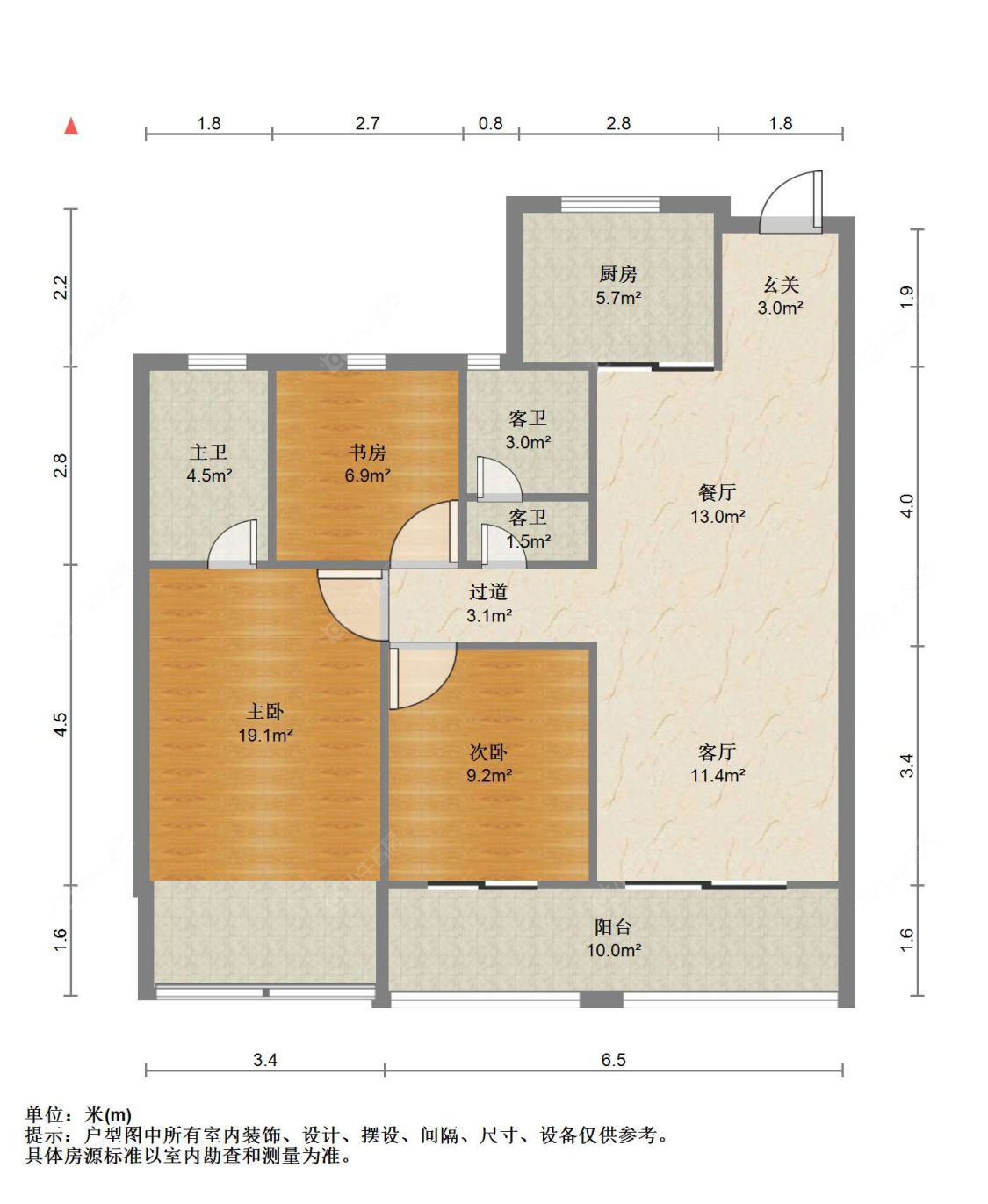 3室2厅2卫 | 110㎡ | 南