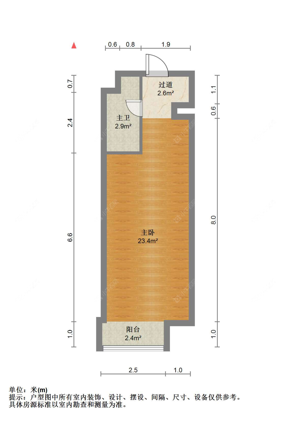 面积38.2㎡ | 南 | 1室1厅1卫