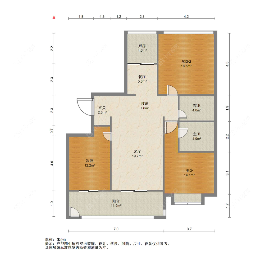 3室2厅1卫 | 88㎡ | 南