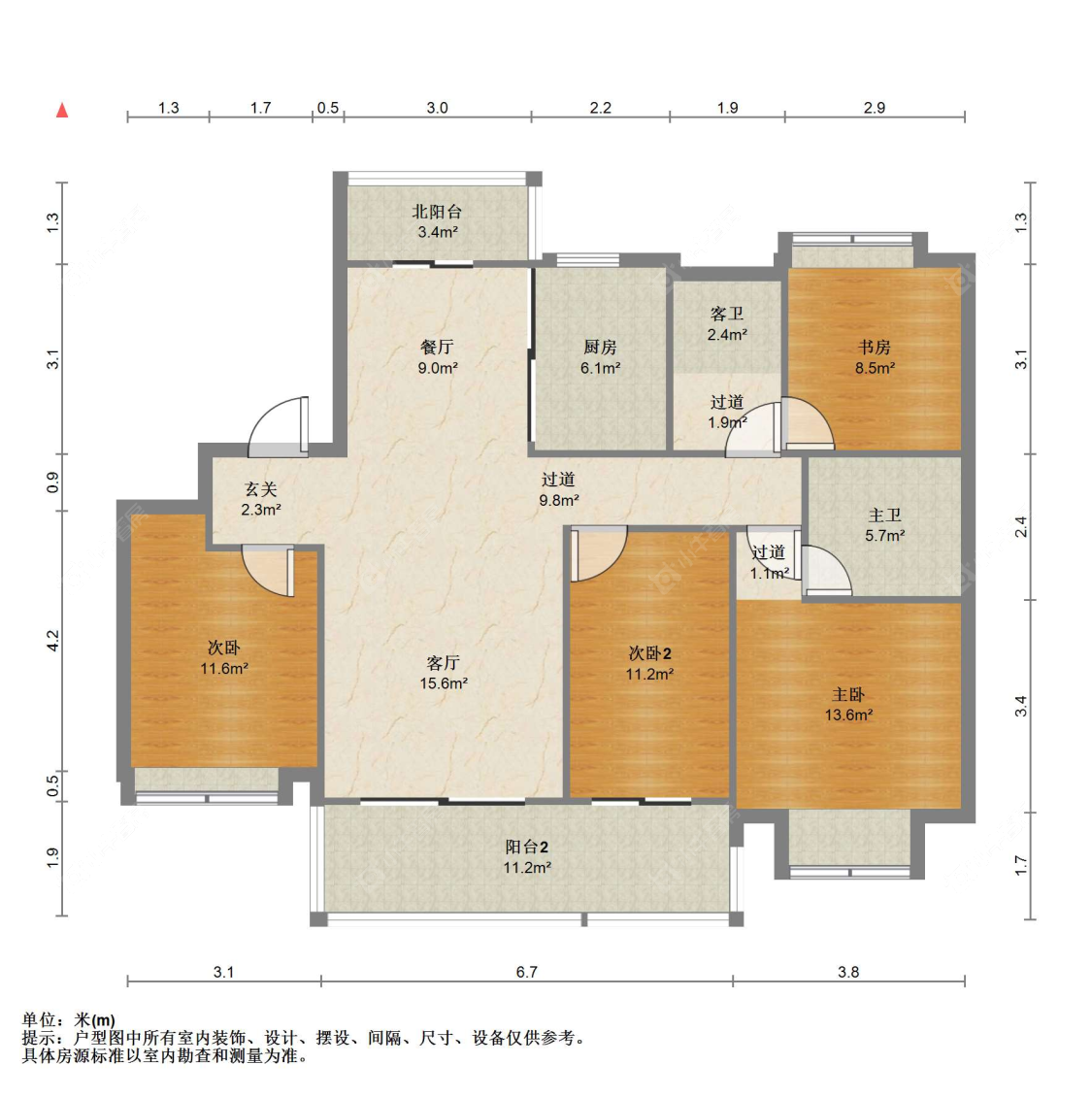 3室2厅2卫 | 125㎡ | 南