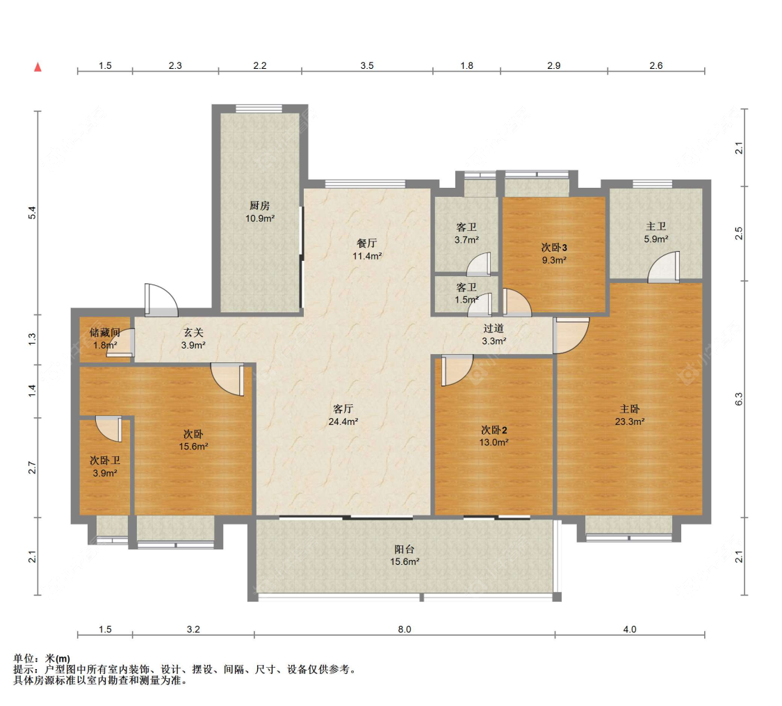 3室2厅2卫 | 116㎡ | 南