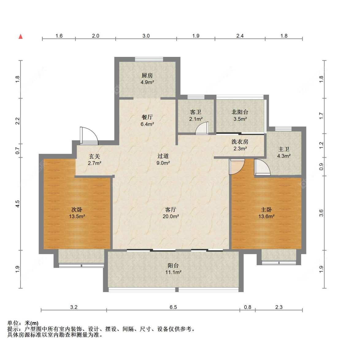 3室2厅2卫 | 105.81㎡ | 南