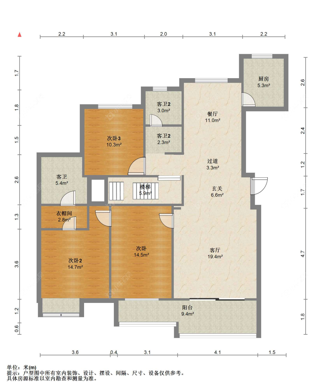 5室2厅3卫 | 155㎡ | 南
