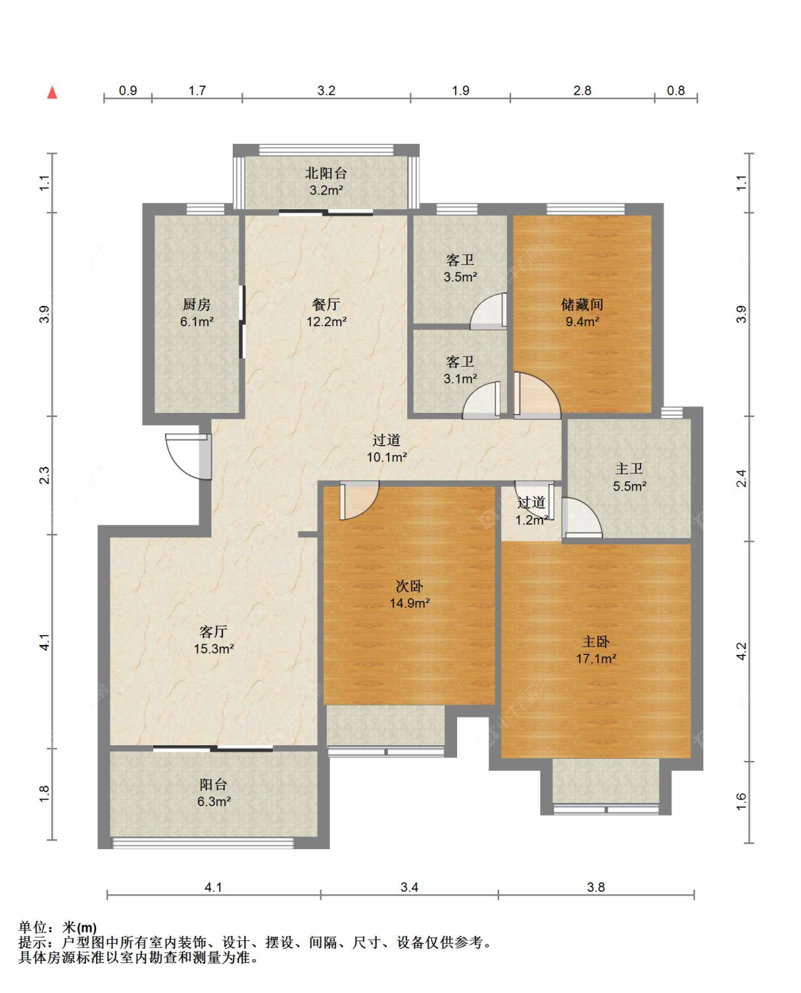 3室2厅2卫 | 144.8㎡ | 南