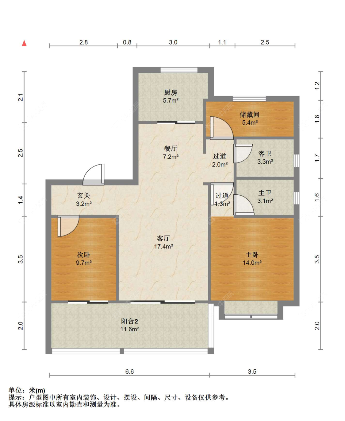 面积116㎡ | 南 | 3室2厅2卫