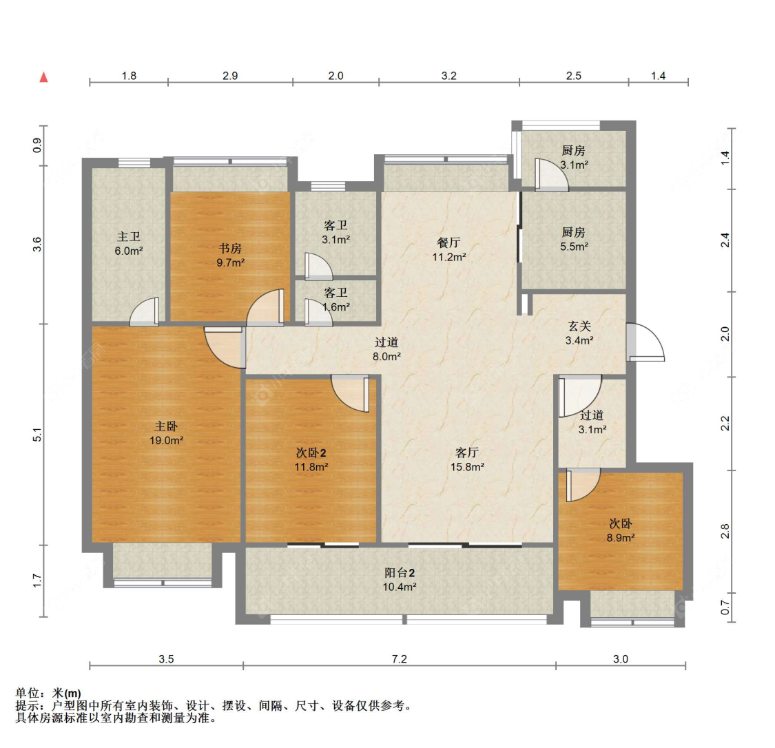 3室2厅2卫 | 103㎡ | 南