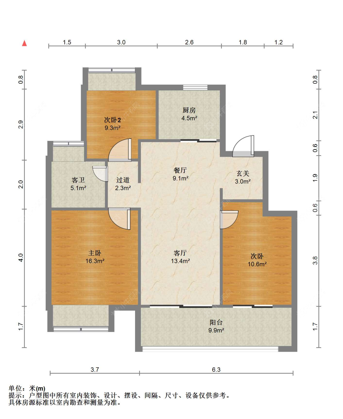 3室2厅1卫 | 97㎡ | 南