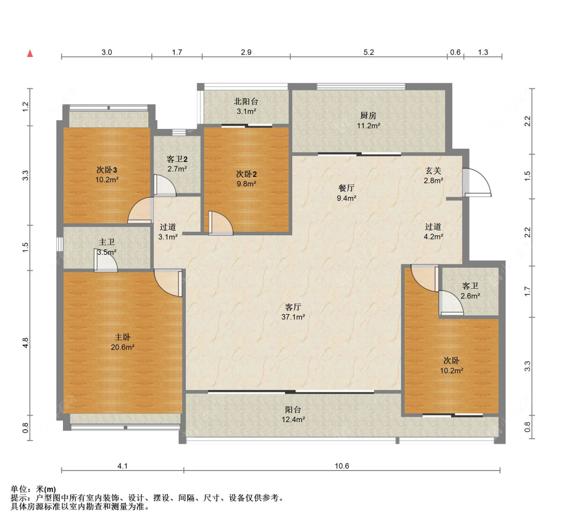 3室2厅2卫 | 98㎡ | 南