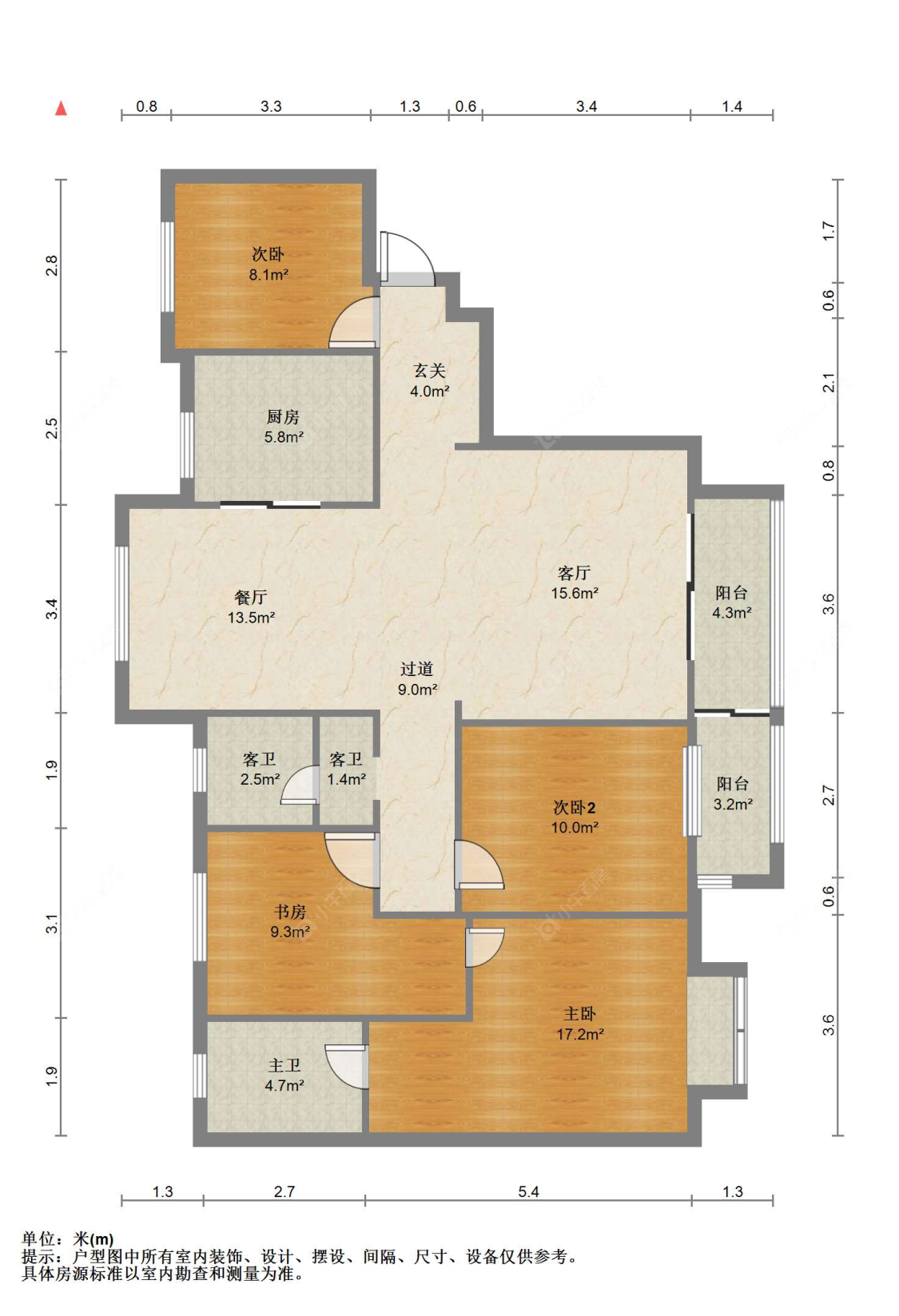 3室2厅2卫 | 110㎡ | 南