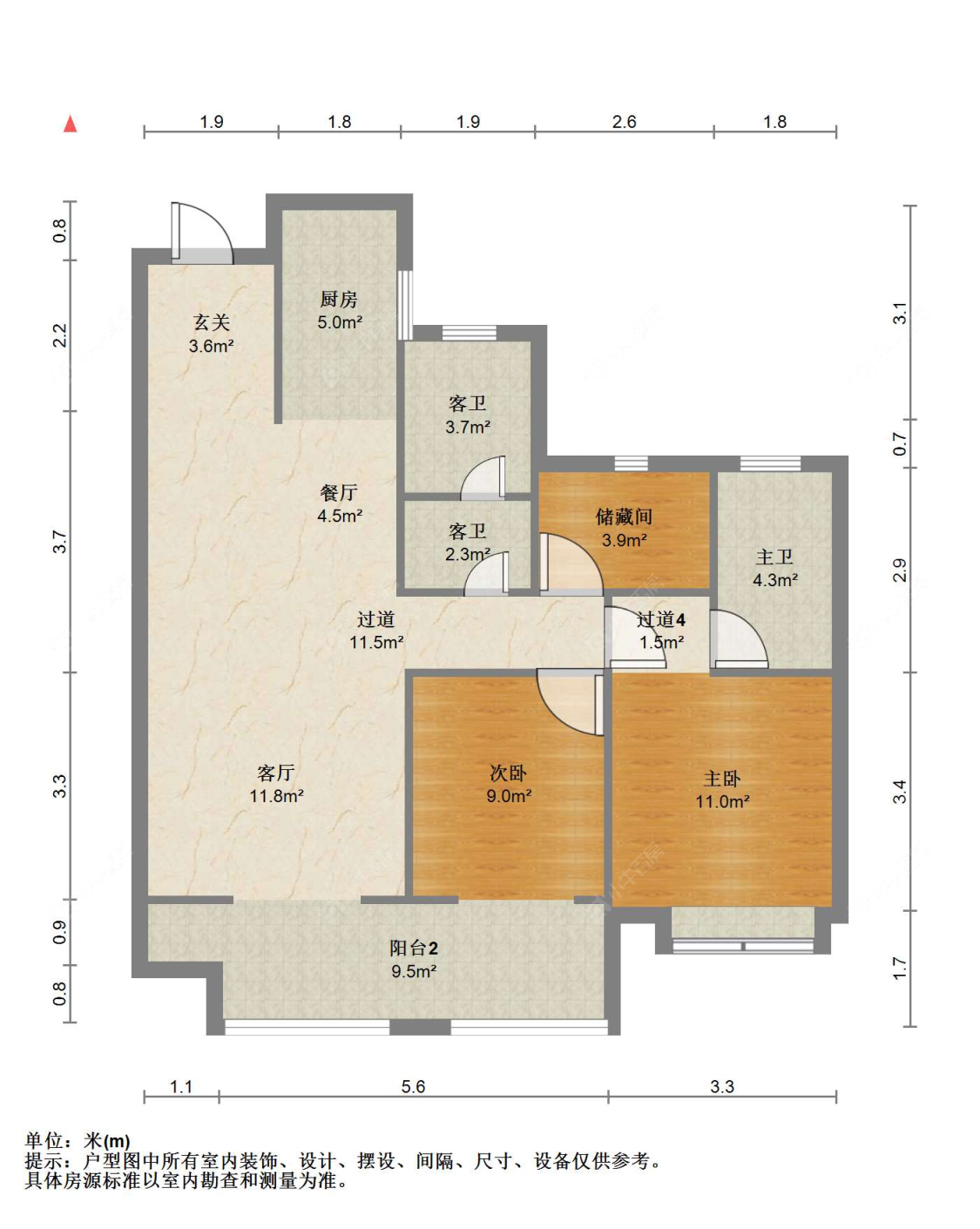3室2厅2卫 | 110㎡ | 南
