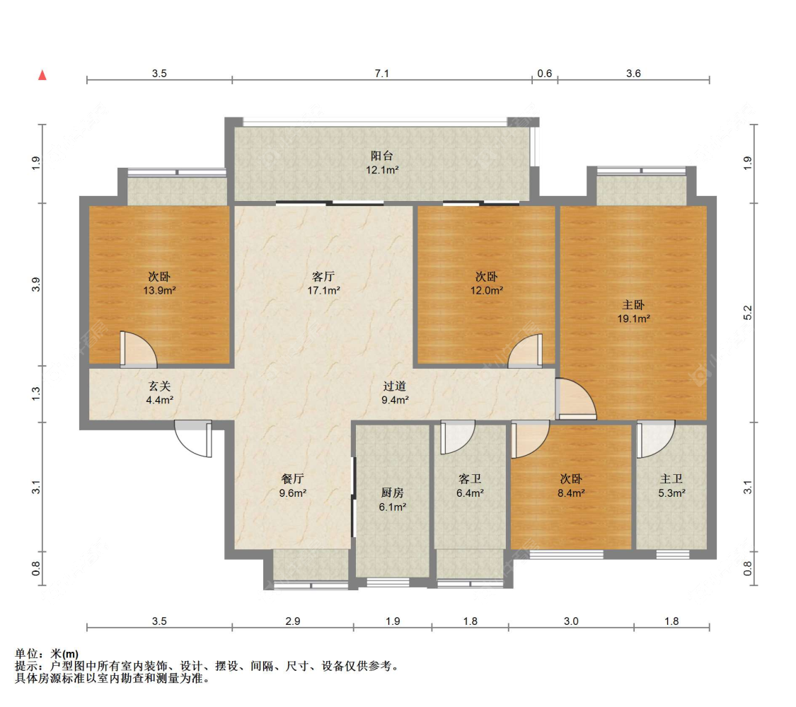 3室2厅2卫 | 122㎡ | 南