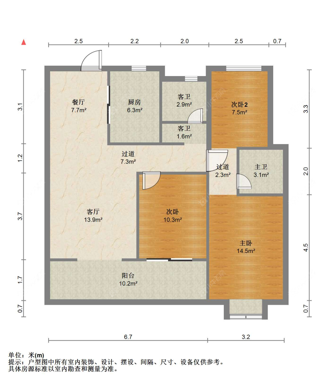 3室2厅2卫 | 110㎡ | 南