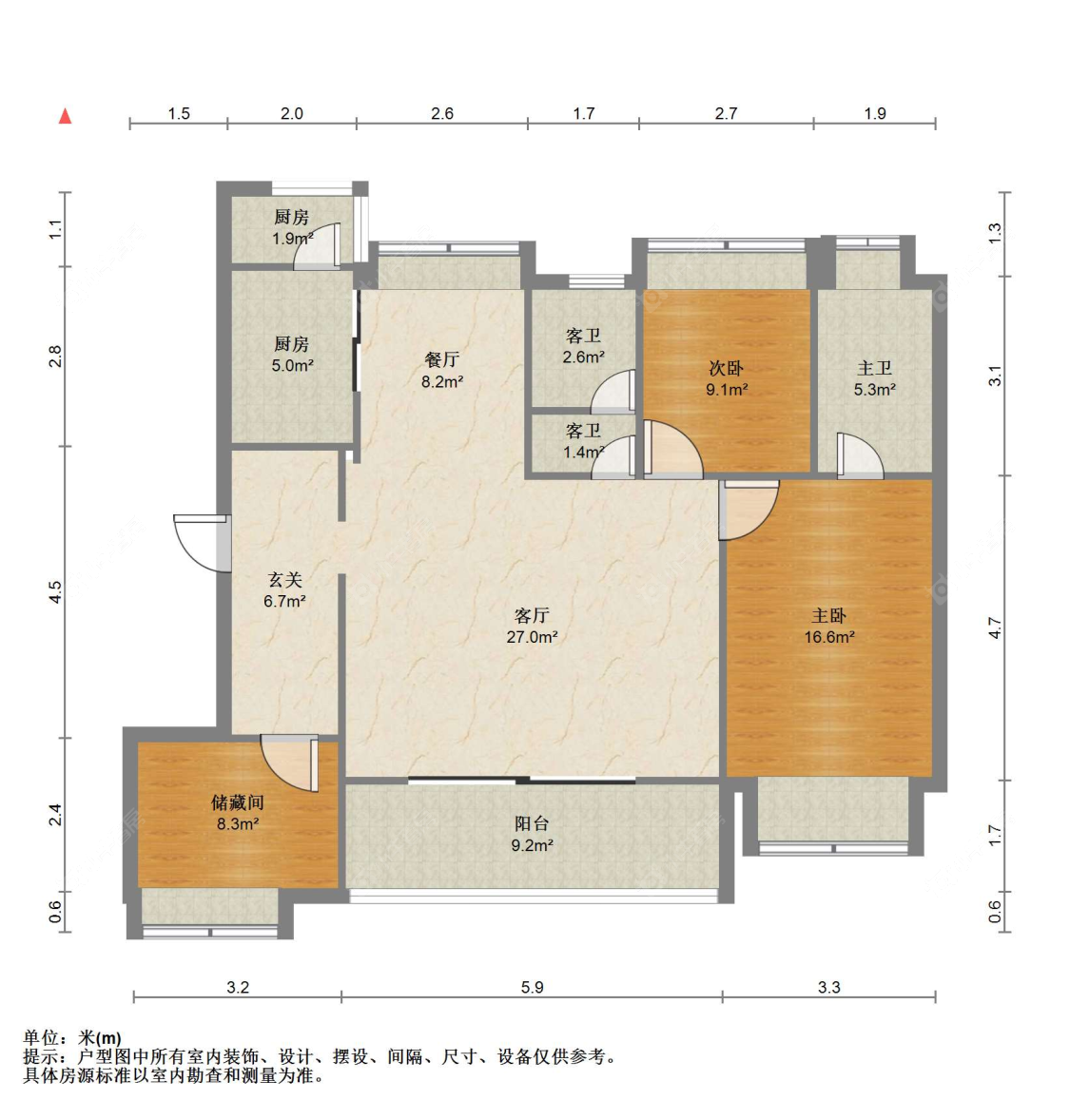 3室2厅2卫 | 103㎡ | 南