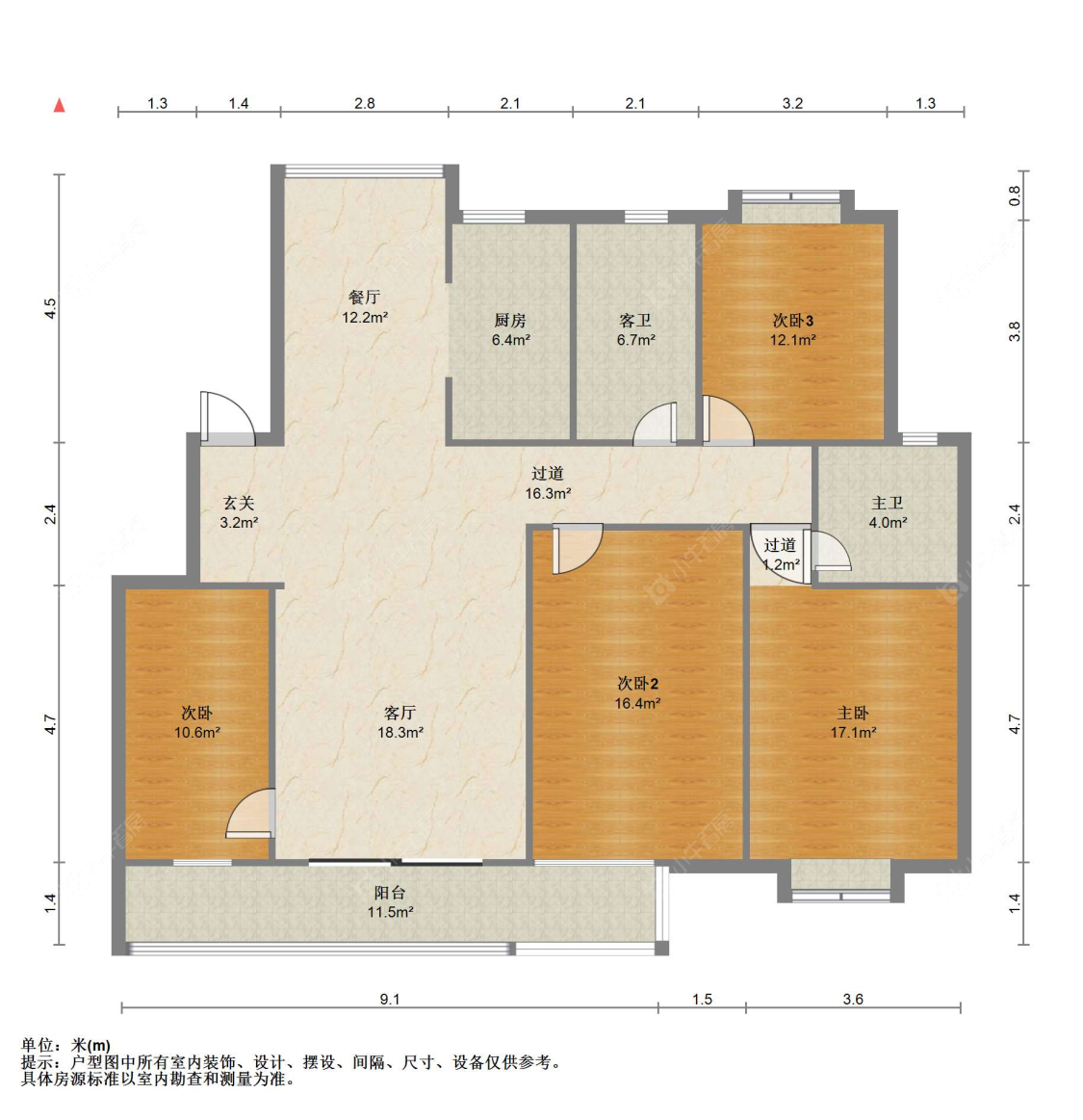 3室2厅2卫 | 157.6㎡ | 南