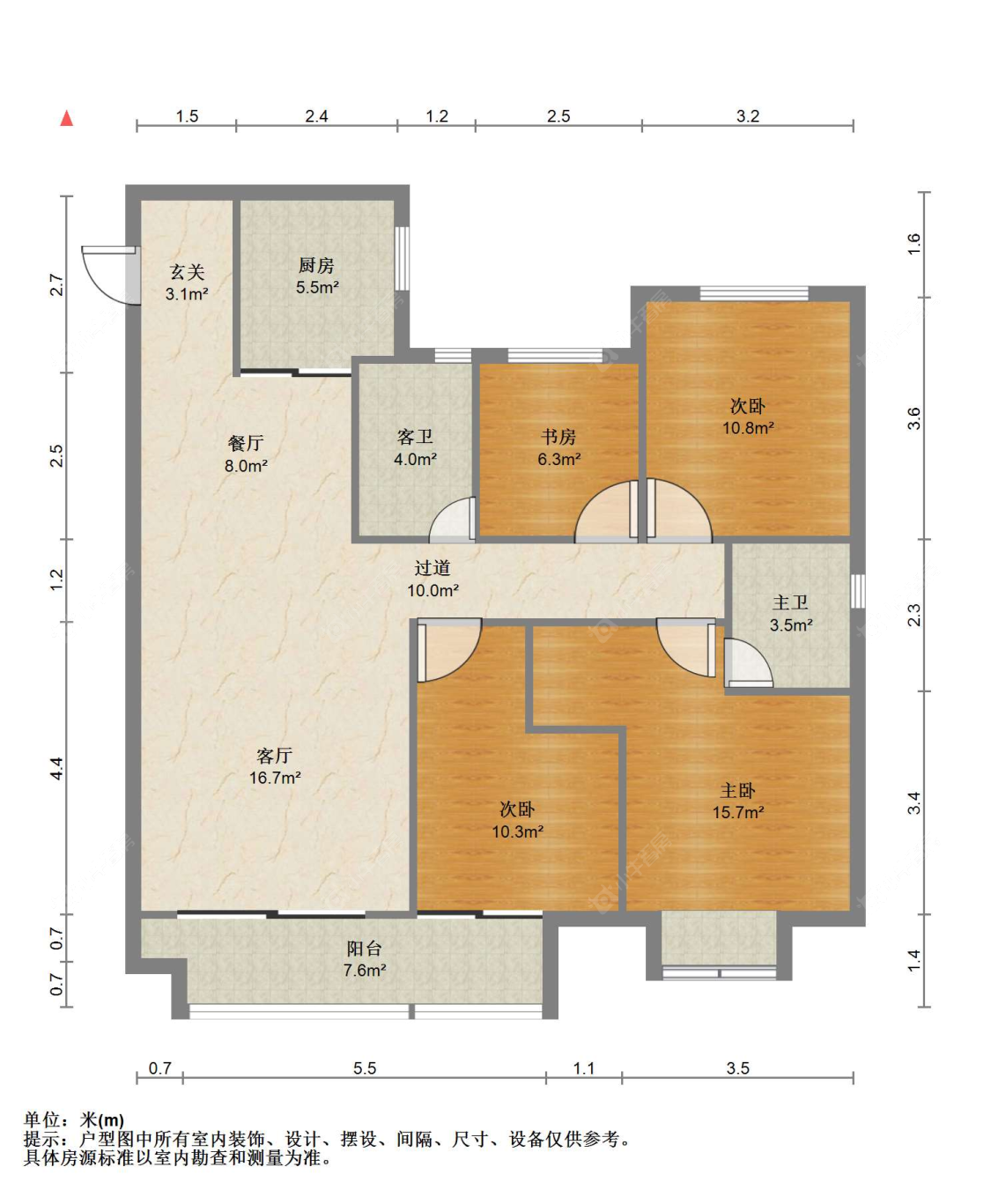3室2厅2卫 | 130㎡ | 南
