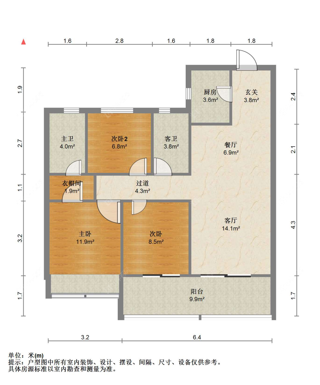 面积110㎡ | 南 | 3室2厅2卫