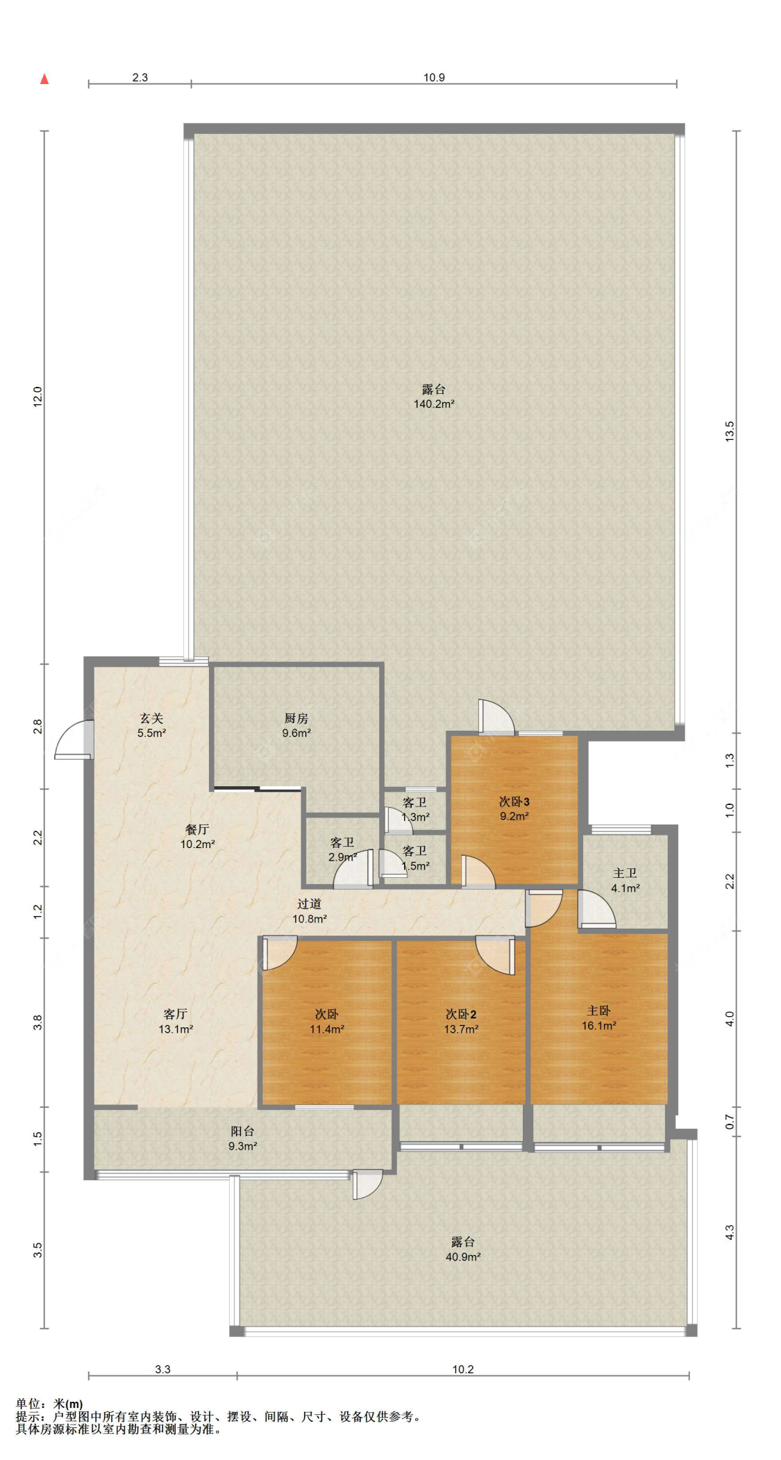 3室2厅2卫 | 135㎡ | 南