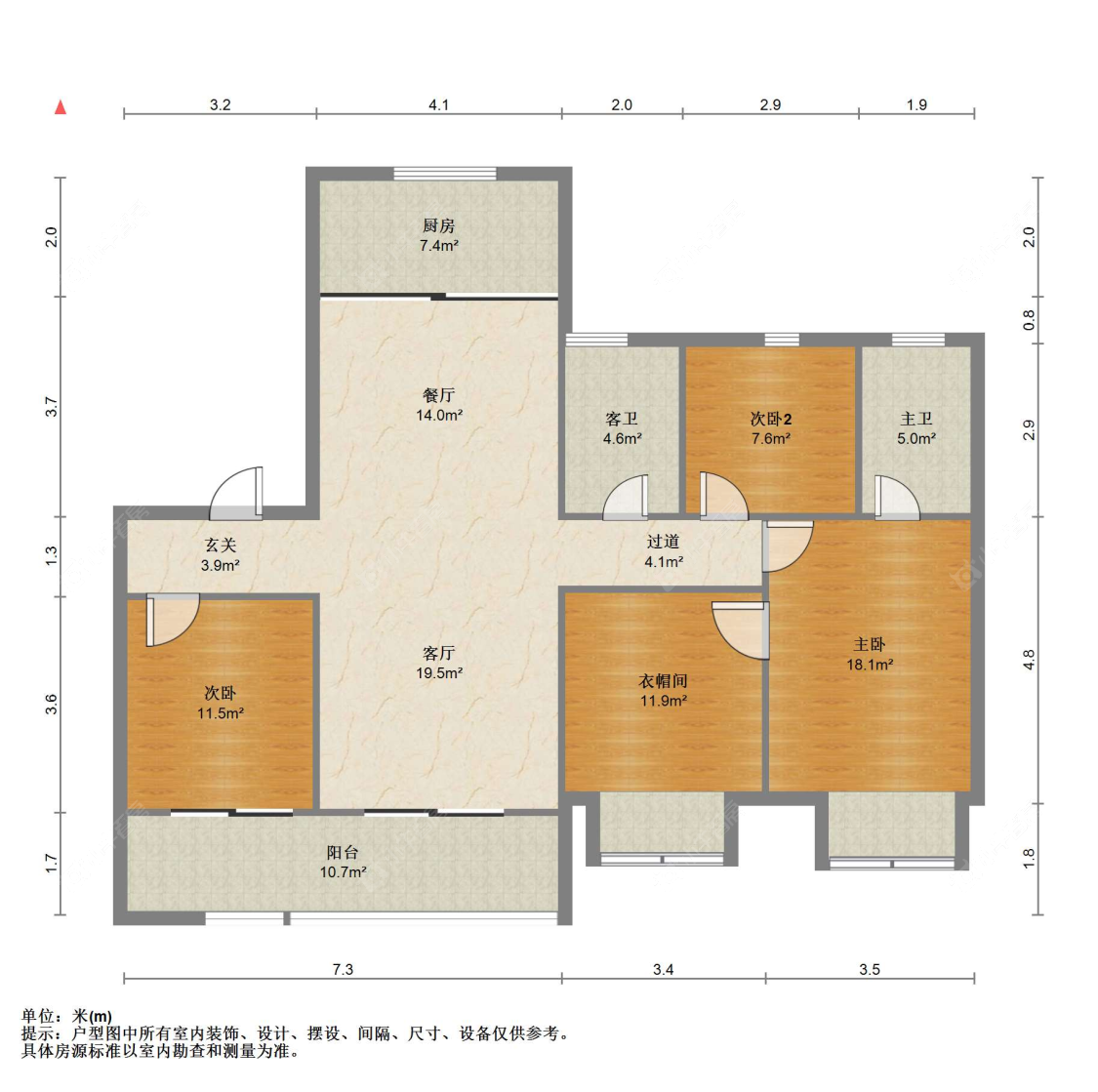 3室2厅2卫 | 110㎡ | 南