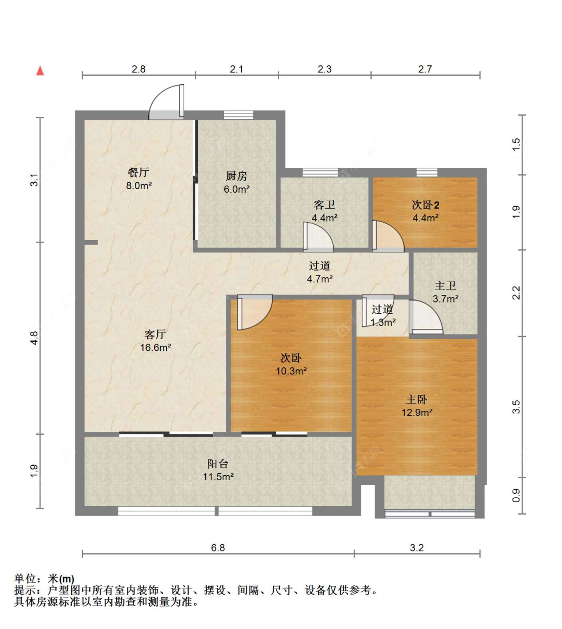 3室2厅2卫 | 110㎡ | 南