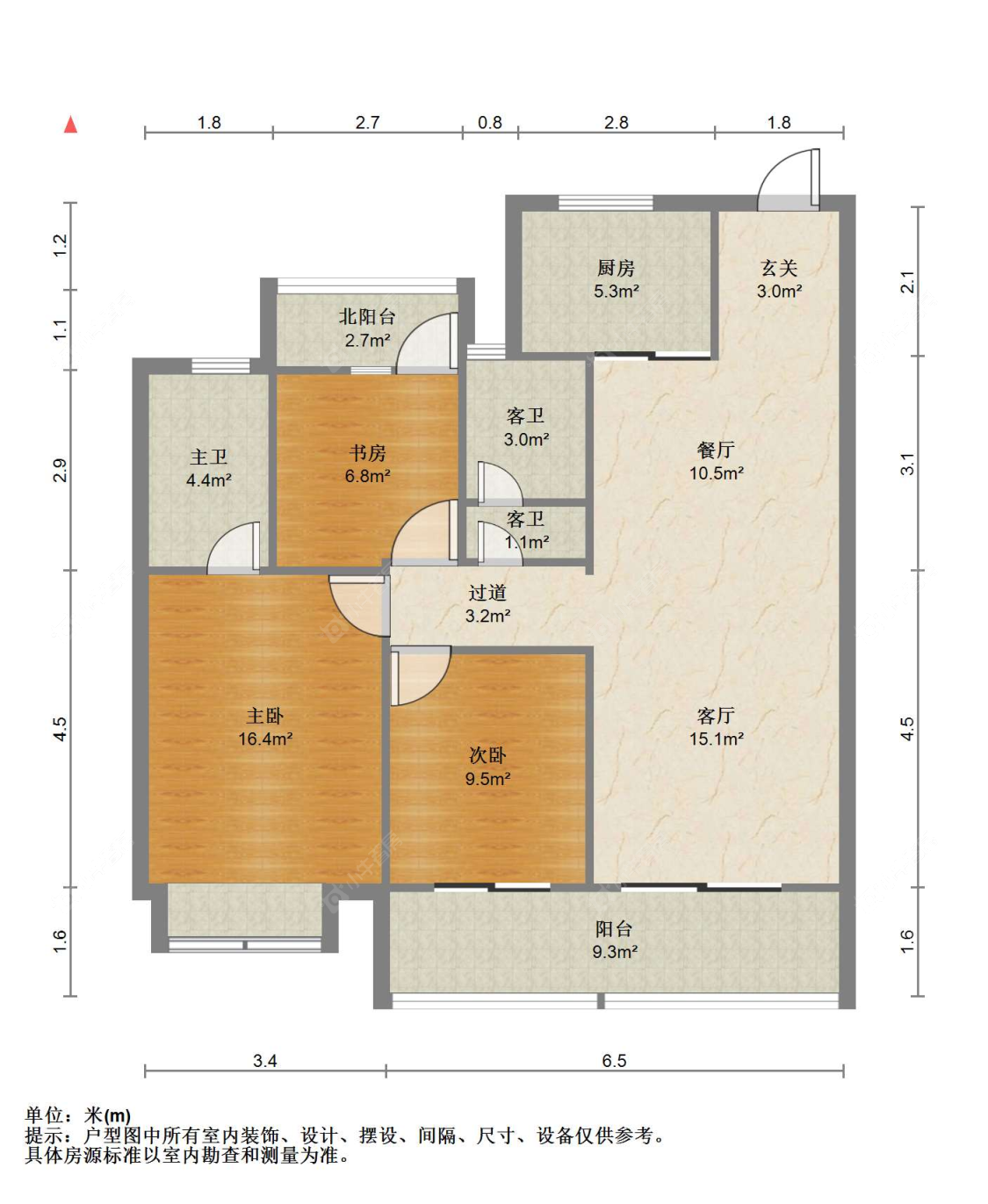 3室2厅2卫 | 110㎡ | 南