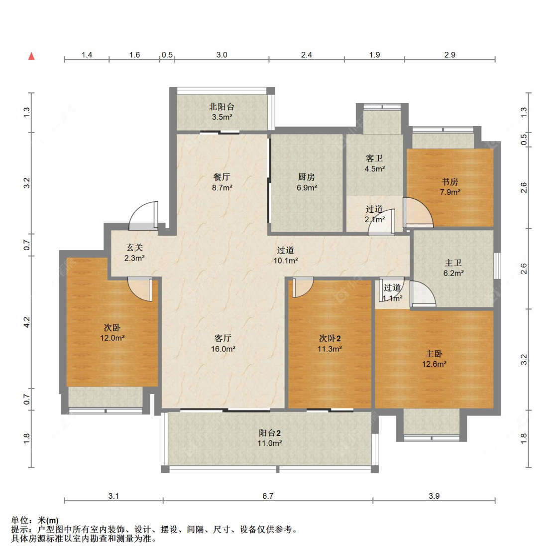 3室2厅2卫 | 125㎡ | 南