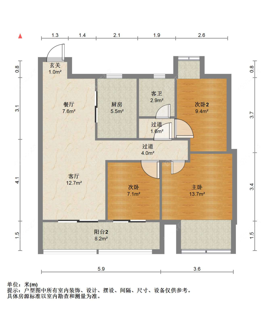 3室2厅2卫 | 103㎡ | 南