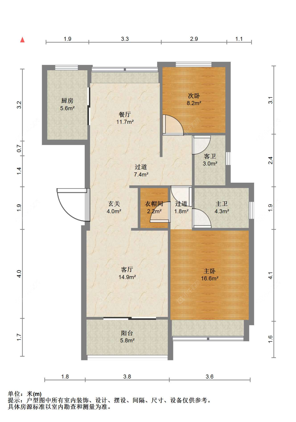3室2厅2卫 | 98㎡ | 南
