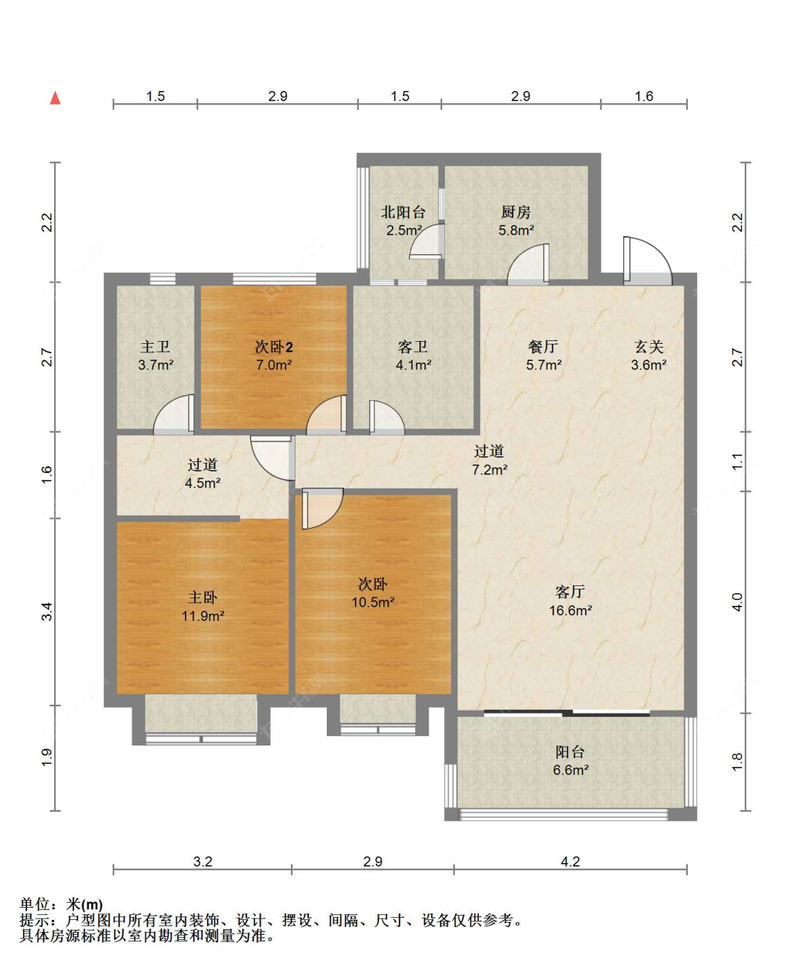 3室2厅2卫 | 106㎡ | 南