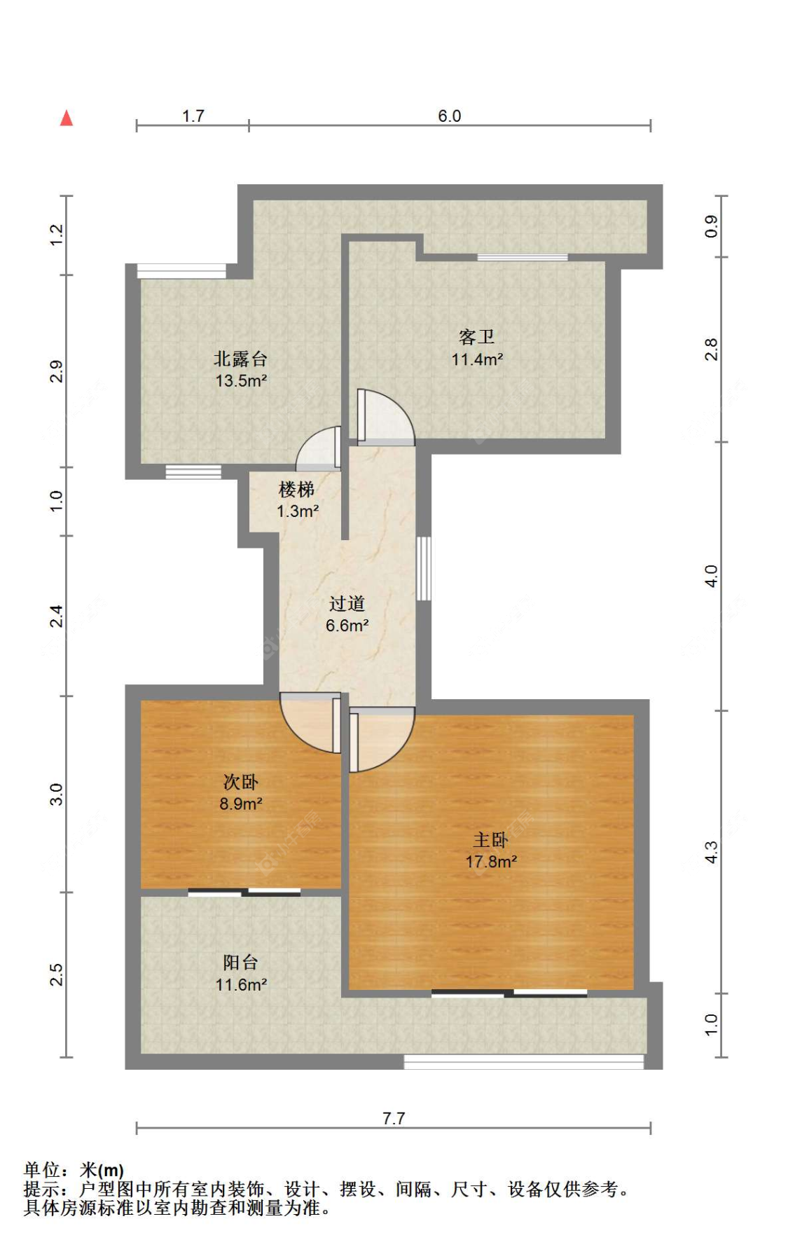1.3元/㎡·月