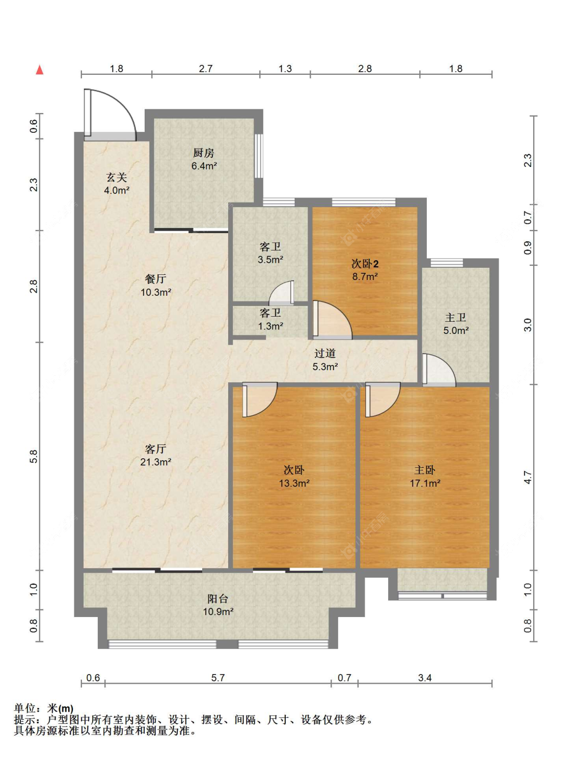 3室2厅2卫 | 110㎡ | 南