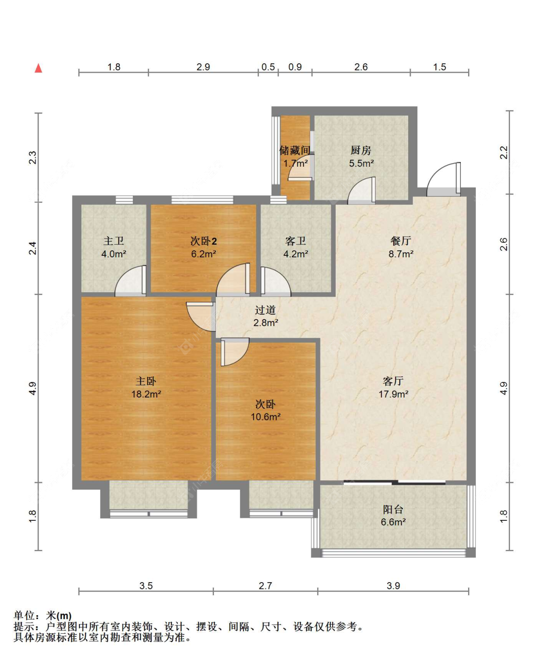 3室2厅2卫 | 106㎡ | 南