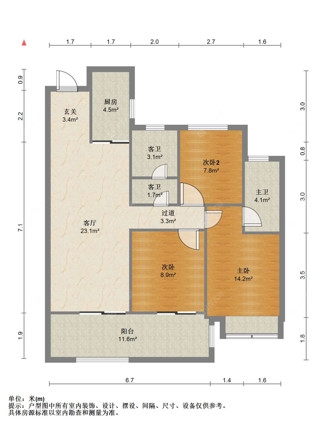 3室2厅2卫 | 110㎡ | 南