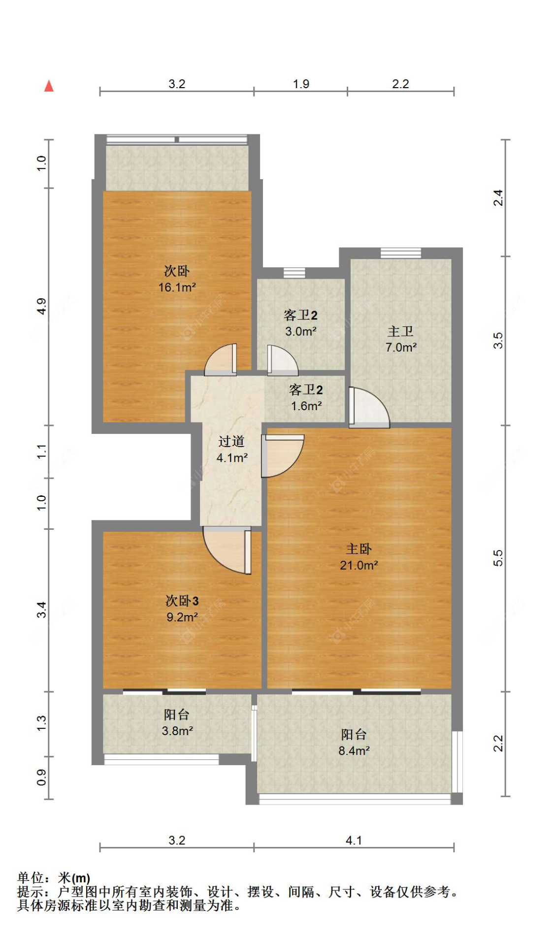 3室2厅2卫 | 98㎡ | 南