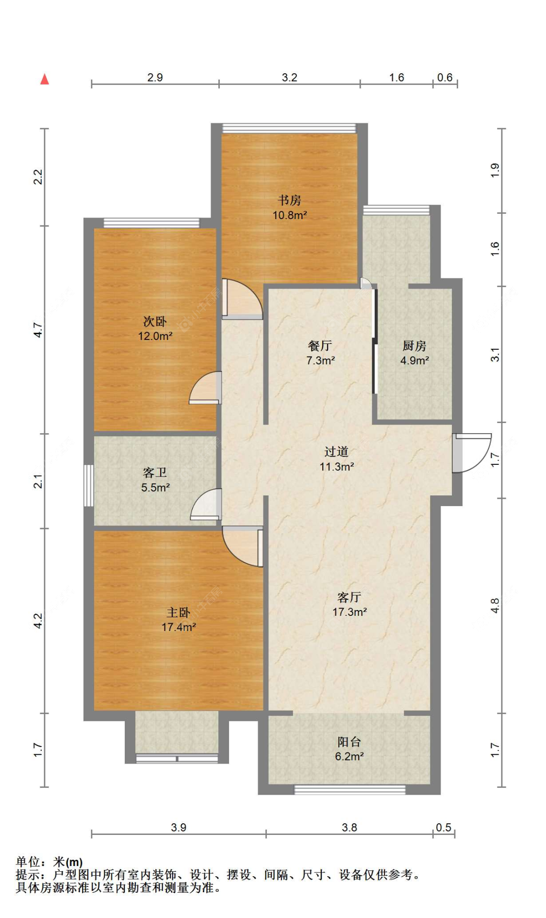 3室2厅1卫 | 123㎡ | 南