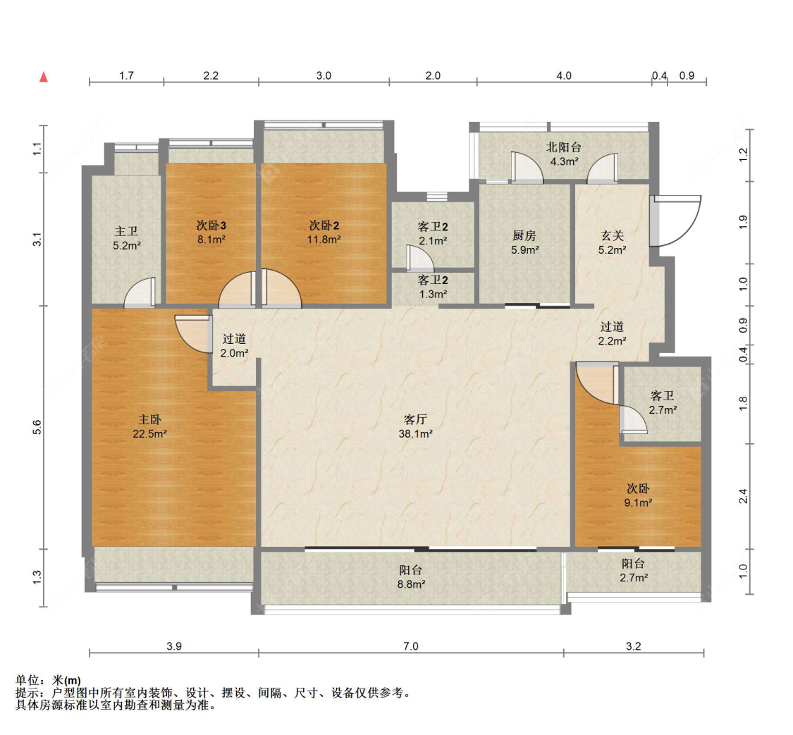 面积127㎡ | 南 | 3室2厅2卫
