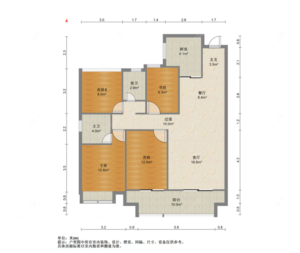 3室2厅2卫 | 110㎡ | 南