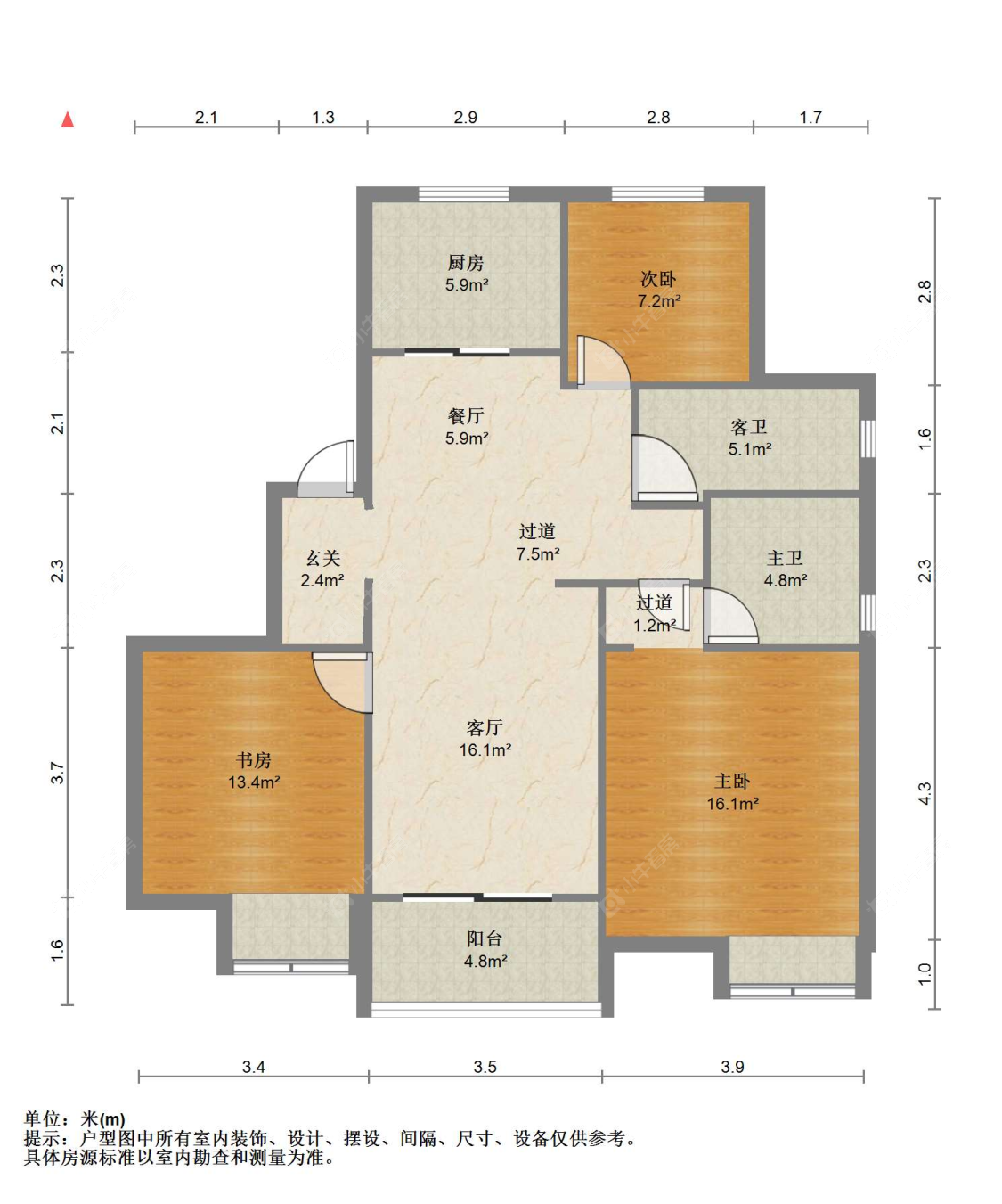 3室2厅2卫 | 106㎡ | 南