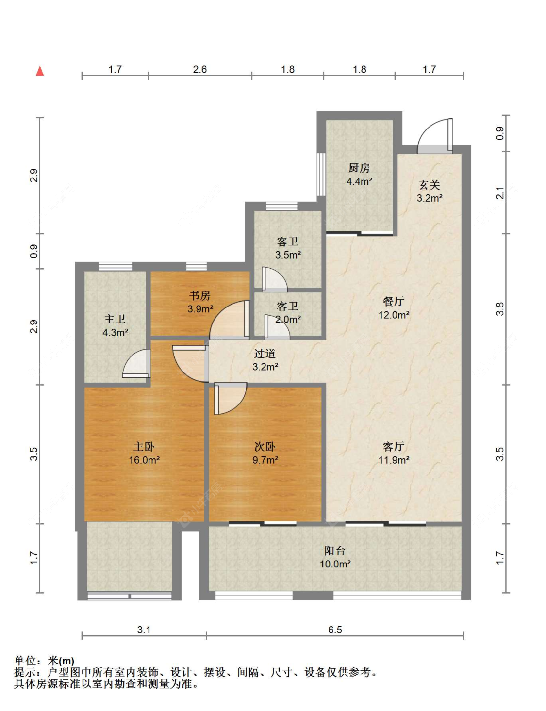 3室2厅2卫 | 110㎡ | 南