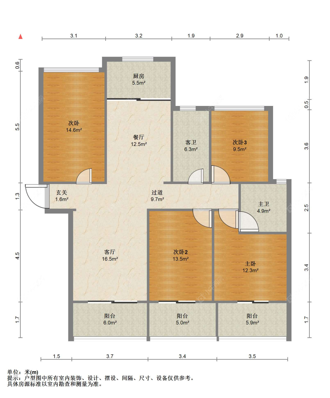 3室2厅2卫 | 114㎡ | 南