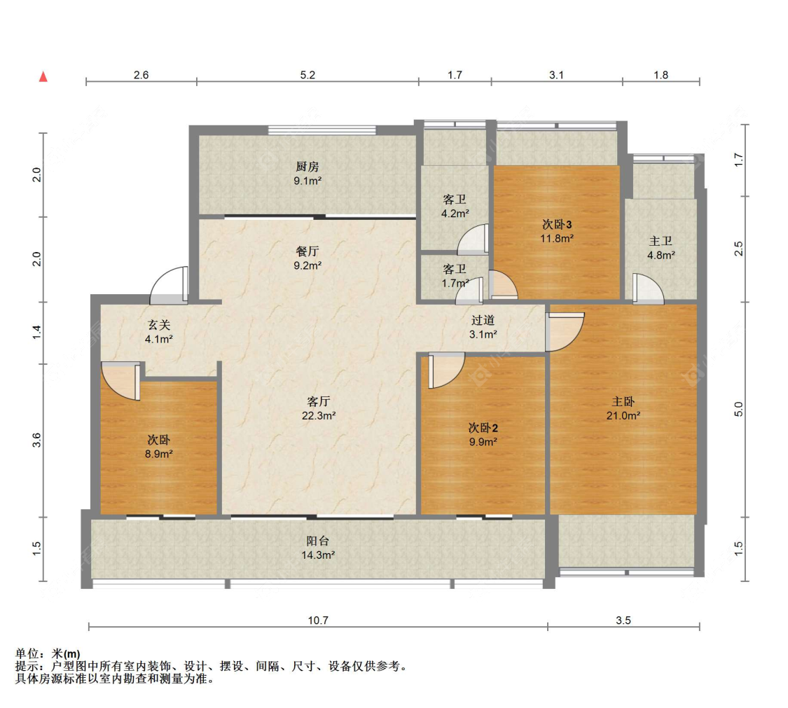 3室2厅2卫 | 100㎡ | 南