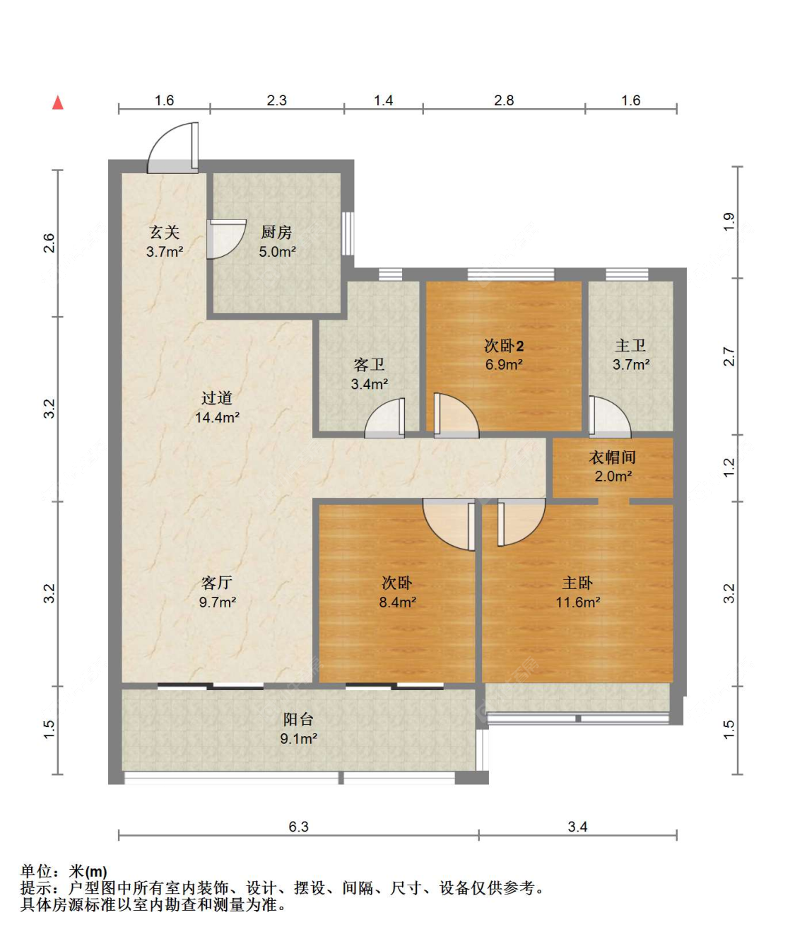 3室2厅1卫 | 99㎡ | 南