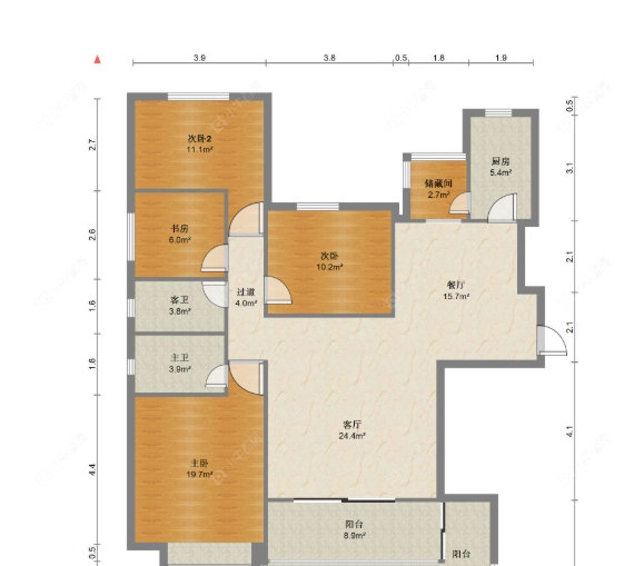 3室2厅2卫 | 118㎡ | 南